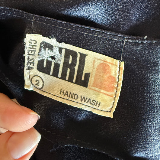 Black satin vintage 1970s Chelsea Girl cocktail dress