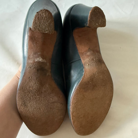 Pine green leather vintage 1940s babydoll heeled shoes UK 6
